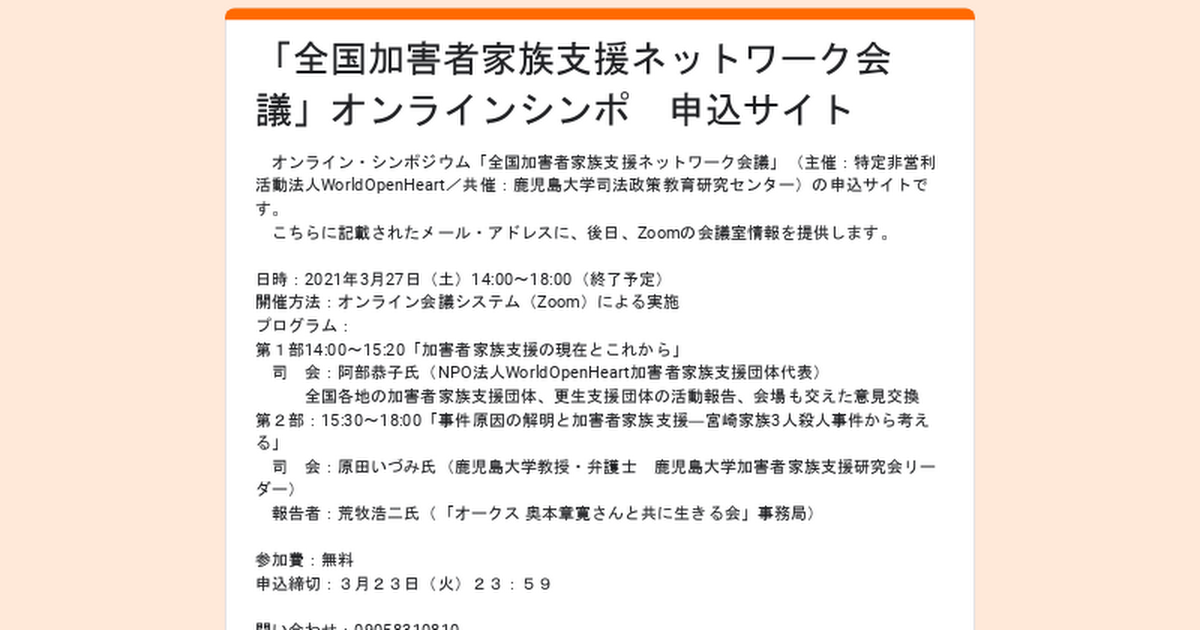 「全国加害者家族支援ネットワーク会議」オンラインシンポ 申込サイト