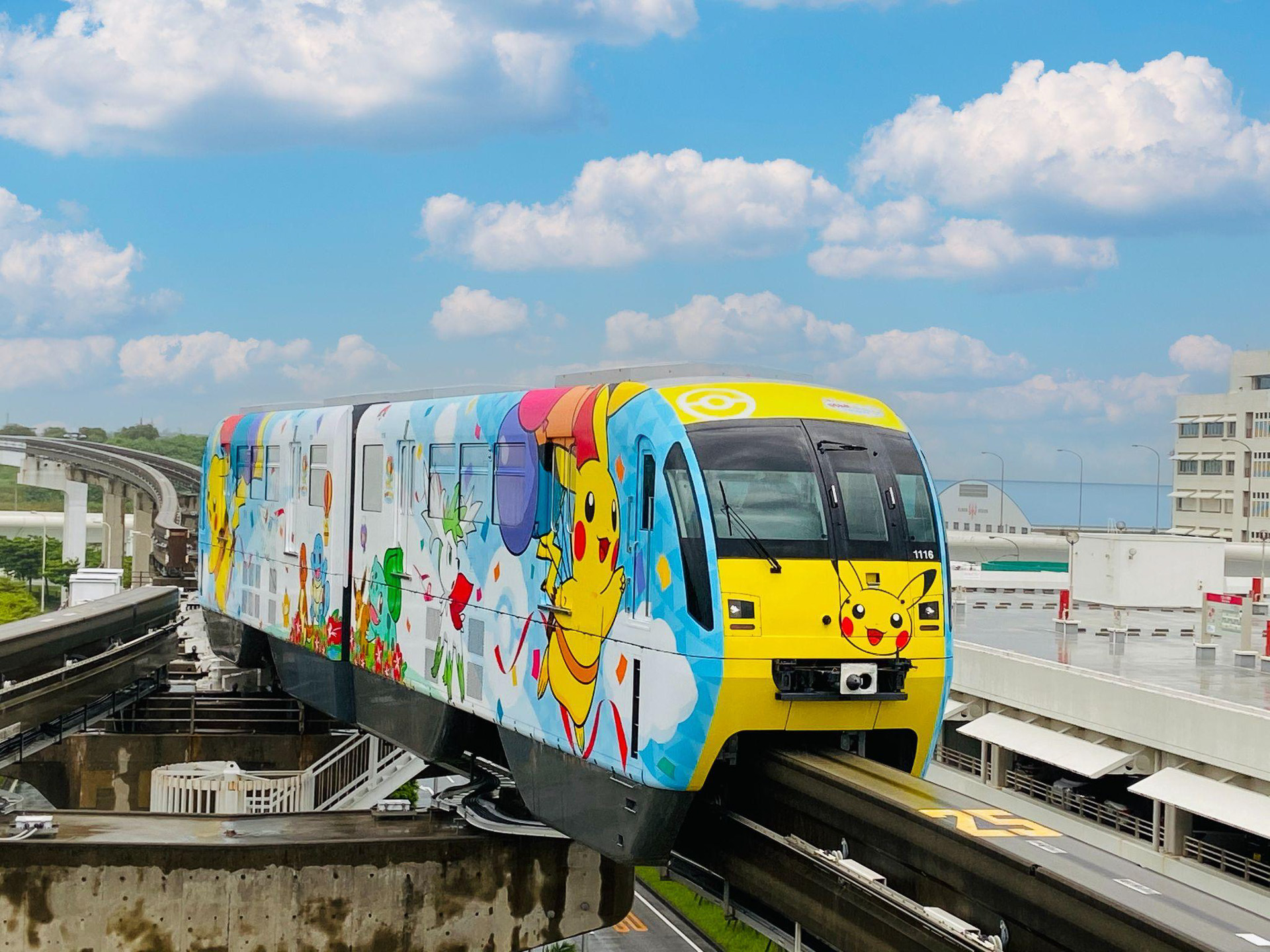 ゆいレール(沖縄都市モノレール)は6月21日、「そらとぶピカチュウプロジェクト」ラッピング車両の運行を開始した。
