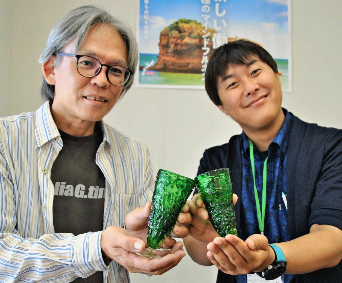 イオンモール沖縄ライカム内にある村の観光案内所「トラベルマートきたポ」で、ゴーヤーの形をガラスで再現した「ゴーヤーグラス」が販売されている。ユニークで目を引き、...